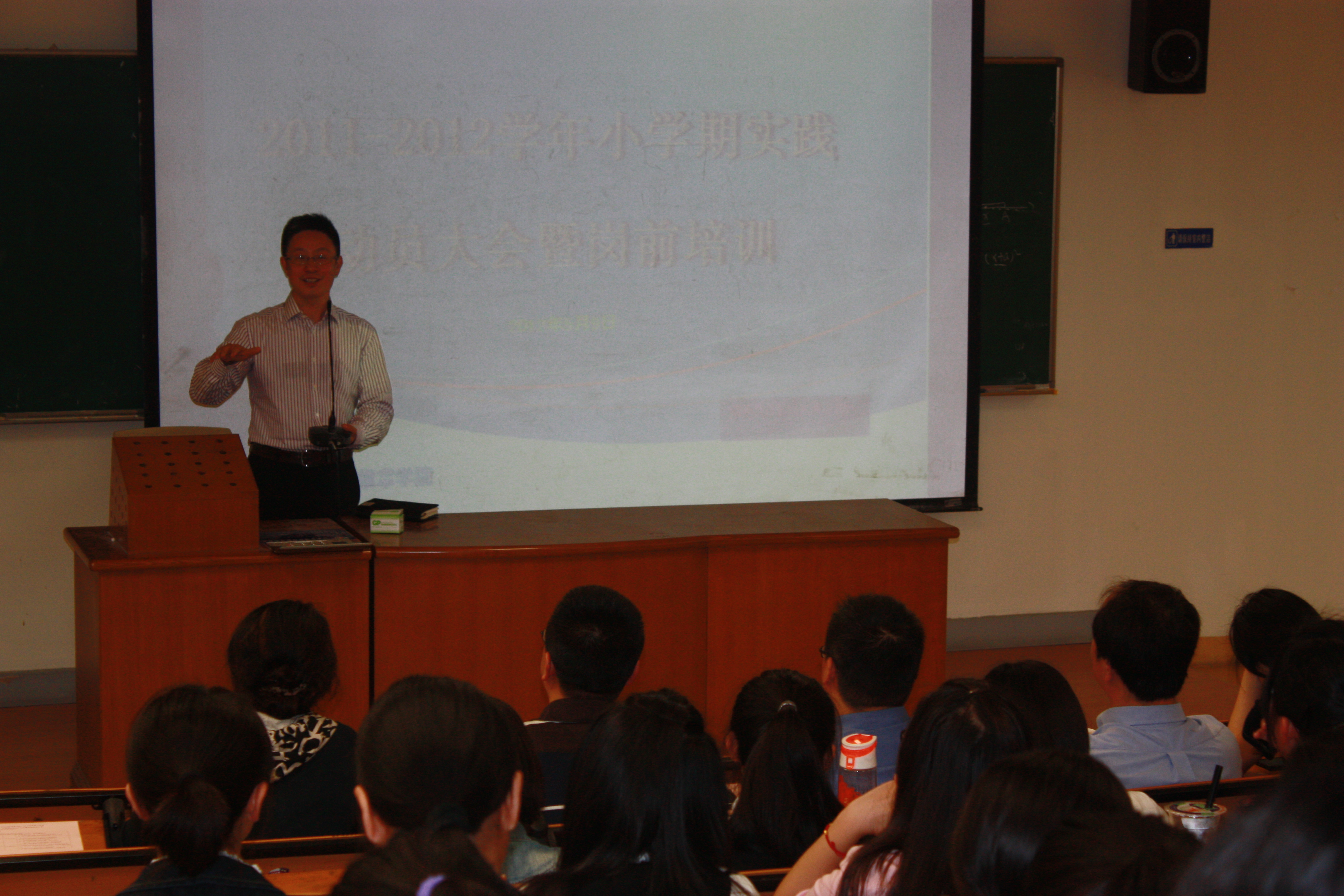 在主题培训中,梁尚华书记以小学期实践过程的自我学习和管理为主题,希望同学们转变见习观念,以医生的身份严格要求自己,在实践过程中,充分理解病人、尊重病人,关注细节,融德育教育于临床见习中,以提高职业责任感。林勋副处长从“小学期实践的目的就是早临床、多临床”的角度出发,结合大量实例介绍了小学期实践在医学生成长过程中的重要性,要求学生主动学习和思考,带着问题参加实践,争取有所收获和成长。王庆华部长希望全体学生在见习过程中要充分协调好学习、实践、生活等各方面的关系,努力学习各项专业技能,遵守学校及医院各项规章制度,树立我校大学生的良好形象。