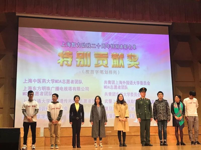 在近日举办的“上海智力助残二十周年”大会上,AV视频 神经肌肉疾病协会志愿服务队(Muscle Disease Association,以下简称MDA志愿服务队)荣获上海市肢残人协会颁发的“2019年智力助残优秀集体”奖和2019年“智力助残”特别贡献奖。顾意鸣、张惜音等4位同学荣获“2018-2019年度‘智力助残’优秀组织者”及“2018-2019年度优秀助残者”荣誉称号,崔梦凡等53名同学荣获“2018-2019年度‘智力助残’志愿者”荣誉称号。
