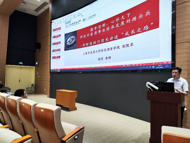 姚斐与全体新生们分享了自己的学术成长之路,鼓励同学们在学习中保持干劲,充分利用课堂、图书馆、临床等资源,带着问题去探索,在反思和实践中不断成长,争做中医药事业传承发展的排头兵。