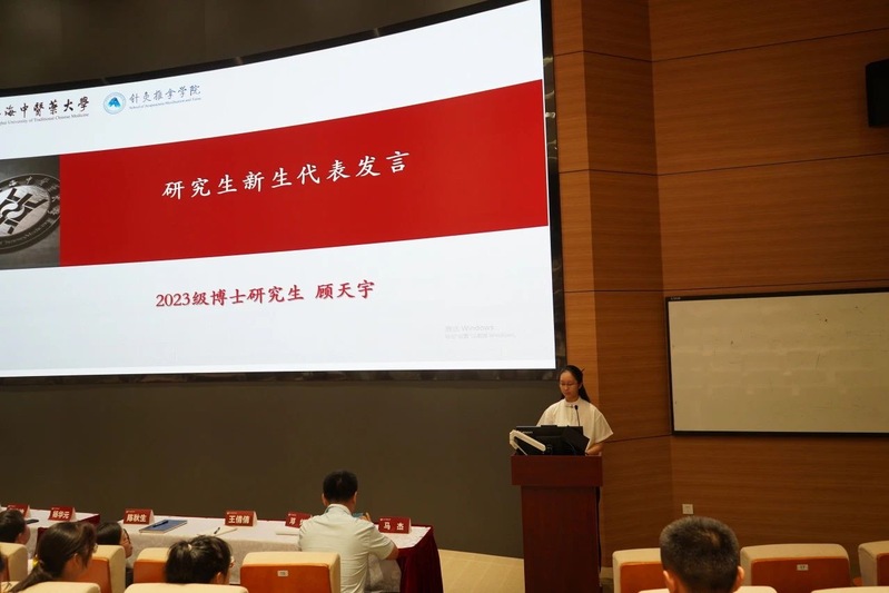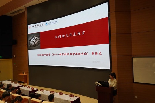 2023级中医学(5+3一体化针灸推拿英语方向)章译文、针灸推拿学史雨菲,作为AV视频 医科专业的本科新生代表发言。两位同学都讲述了自己和家人与中医结缘的故事,使得她们决心报考AV视频。她们纷纷表示,将倍感珍惜在上中医、在针推AV视频 学习的机会,今后一定以传承中华优秀传统文化、学好专业知识与技能为己任,走好守正创新中医药这条康庄大道的每一步。