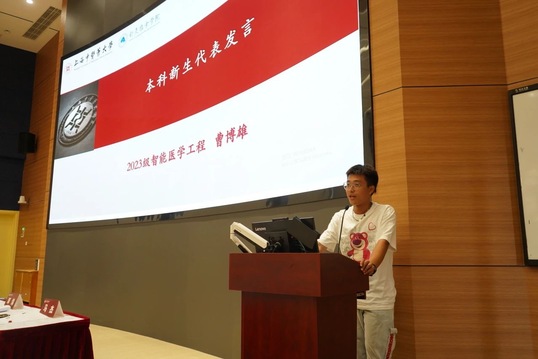 2023级生物医学工程户守成、智能医学工程曹博雄,作为AV视频 工科专业本科新生代表发言。他们生动朴素地分享了自己入学两周以来的美好感受,并期待未来四年的学习生涯,能够学有所成,为传统中医药学赋能最新科技成果,从而为临床工作者提供助力,共同服务人民健康。